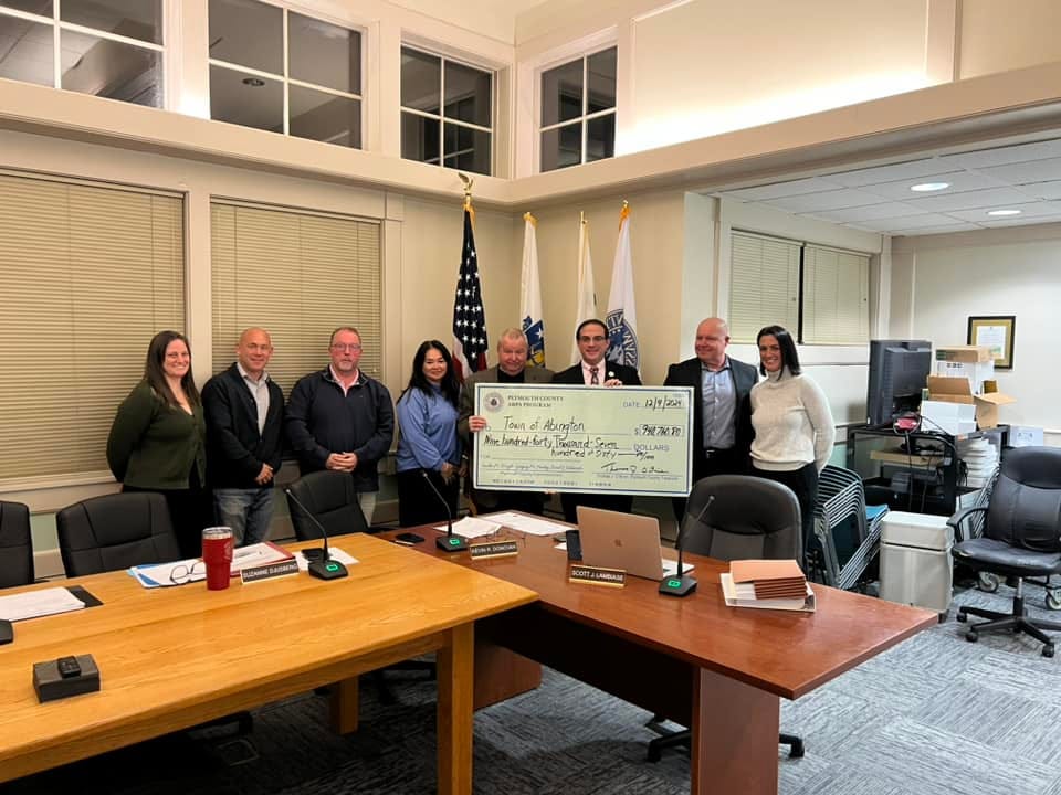 ABINGTON - December 9 - Plymouth County Commissioner Jared Valanzola presented Abington with its final check for COVID-related funding at Monday's Board of Selectmen meeting. The funds are designated for a mobile vaccination unit and stormwater remediation projects.