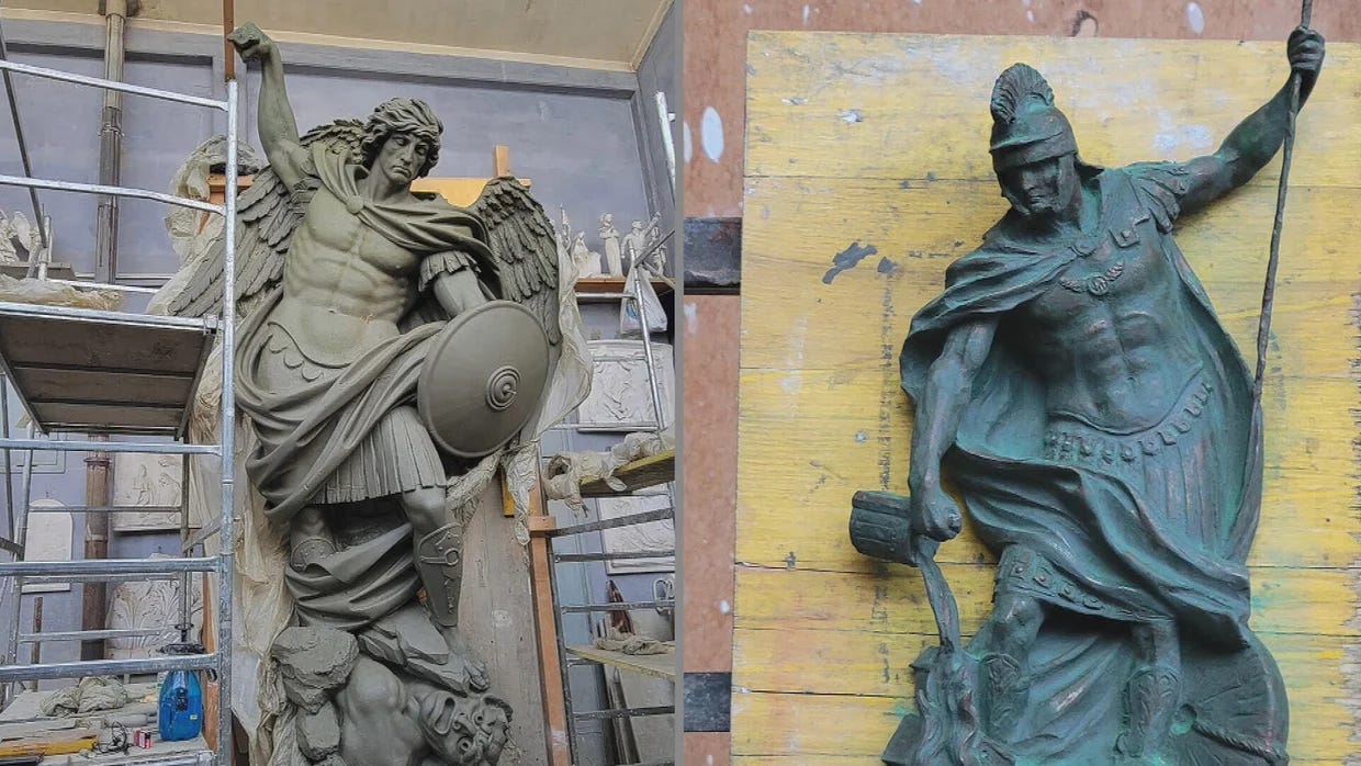 • Saint Michael, however, became a lightning rod. The statue depicts the Archangel in a “triumphant” pose, brandishing a spear and stepping on the neck of a defeated demon.