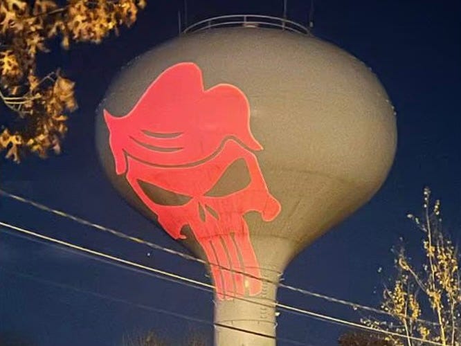 HANSON, MA - November 6- The Town of Hanson has reinstated blocking measures on its municipal water tower Wednesday after a resident resumed projecting a Trump related image onto the structure, just hours after the town had discontinued its previous deterrent efforts.