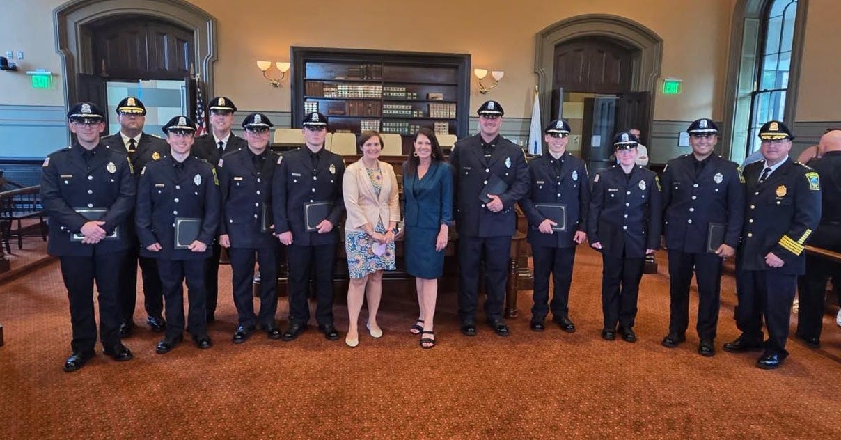 PLYMOUTH - July 8 - The Plymouth Select Board swore in 10 new and promoted police officers at their July 8 meeting, marking a significant expansion for the department that includes the town's first-ever deputy police chief.